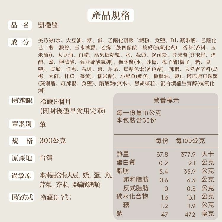 ●本沙拉醬產品無添加防腐劑、味精、人工色素