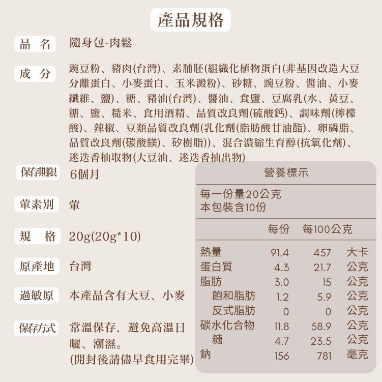 ●精選台灣豬與廣達香獨家配方,焙炒出金黃鬆綿的肉鬆
