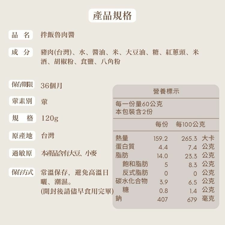●本產品精心挑選的100%台灣豬肉原料、道地台灣醬汁與獨家配方製成,讓您在家就能輕鬆享用台灣著名的魯肉飯