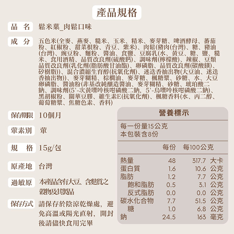●五色穀物低溫烘焙,酥脆營養