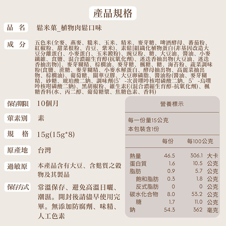 ●五色穀物低溫烘焙,酥脆營養
