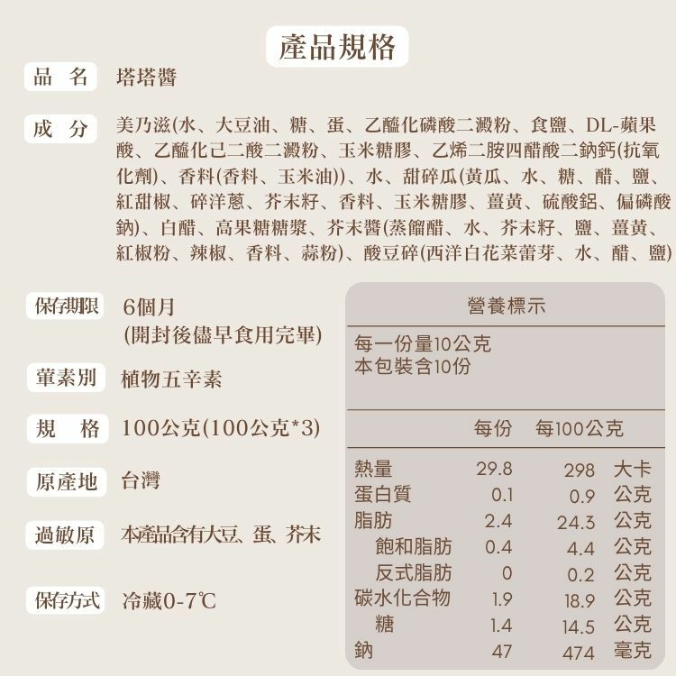 ●本沙拉醬產品無添加防腐劑、味精、人工色素
