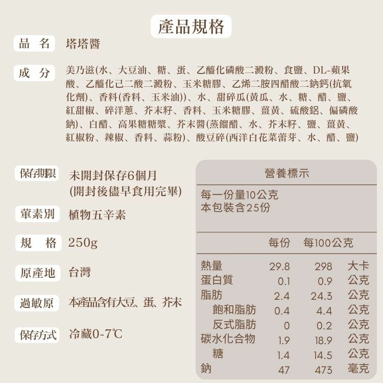 ●本沙拉醬產品無添加防腐劑、味精、人工色素